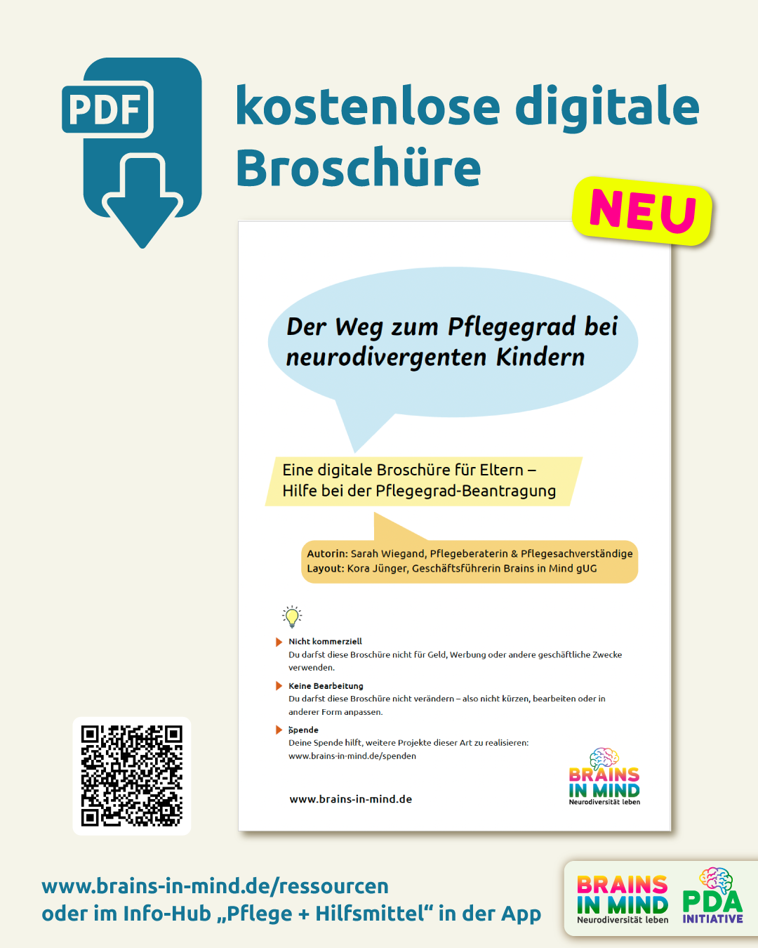 Dafür haben wir – eine kleine Gruppe von Eltern – sogar diese gemeinnützige UG gegründet: Brains in Mind gUG. Unser Ziel ist es, niedrigschwellige psychoedukative Unterstützung zu ermöglichen und mehr Aufklärung und Vernetzung im Bereich Neurodiversität zu schaffen.
